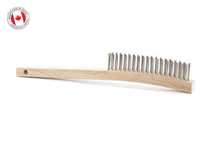 Brosse à fils d'acier pour la finition du métal sur des surfaces lisses telles les plaques. Cette brosse avec 3 rangées de fils en acier inox ne rouille pas et elle est idéale là où les conditions hygiéniques sont nécessaires et en présence d'humidité.