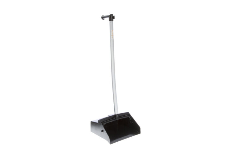 Porte-poussière Lobby de 4" x 11" en plastique qui colle au plancher pour un ramassage maximal, avec manche en aluminium léger et poignée ergonomique.